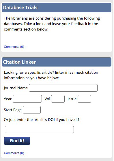 We’ve shared examples of web slides and carousel images in previous posts, and today we bring you a few more examples courtesy of Michael Hughes, Instruction Librarian at Trinity University in San Antonio, Texas.